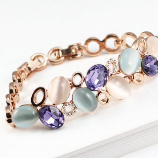 $40.00Shimmering flawless oval-cut violet Amethyst quartz gems and classic sea blue and rose gold stones tie together this perfect piece! Length of 17cm and a width of 1.5cm