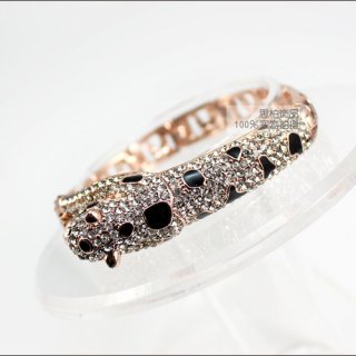 $43.00This gleamingly marvelous band measures 17cm in length and at its widest, 1.5cm. A sparkling leopard adorned with dozens of man-made diamonds and stark black rhinestones launches itself around your wrist in uninterrupted artistry. Available both in 18k Rose Gold or 18k White Gold plating. Hurry, limited availability and these won't last!