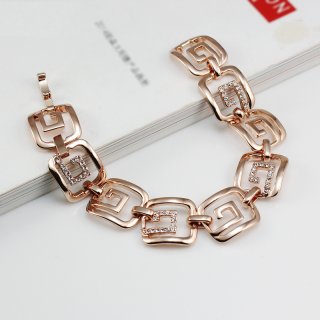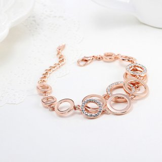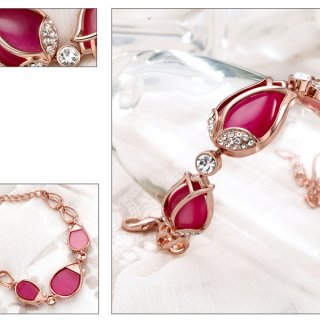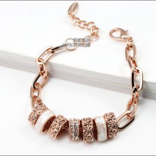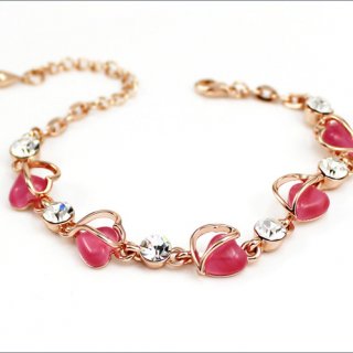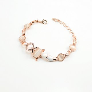$27.00An 18cm 18k Rose Gold chain holds a variety of magnificent oval, rectangular, diamond and rectangular Rose-Gold or Deep-Rose Rhinestones which are accentuated by a man-made cat's-eye diamond.