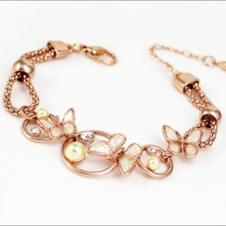 $25.00What a simply fun and charming bracelet! Seashell butterflies dance around dazzling gemstones and dashing pearls while a uniquely designed 'rope' 18k Rose Gold plated chain holds the piece together. Perfect with any outfit!