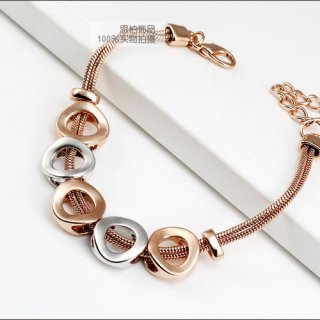 $33.00'O'-so-elegant! This classy contemporary bracelet comprises of a 18cm 18k Rose Gold plated dual-rope chain, completed to perfection with 18k Rose Gold and 18k White Gold accented Os.