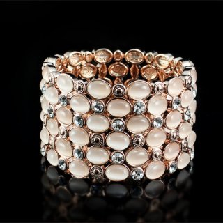 $44.00This gorgeously wide 3.7cm band of milky smooth rhinestones and cat's-eye man-made diamonds wraps around your wrist with opulent beauty and comfort. Set in 18k White Gold (plated)