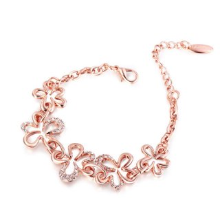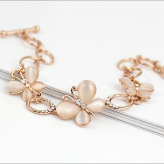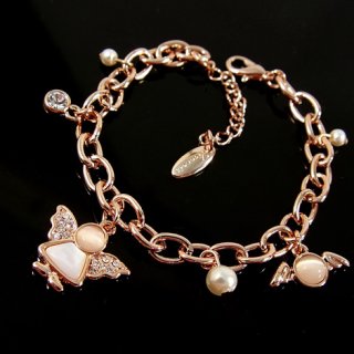 $34.00What a simply elegant and classy bracelet! Creamy Rose Gold Rhinestone butterflies flutter around dazzling man-made diamonds while a uniquely designed 18cm long 18k Rose Gold plated chain holds the piece together. Perfect with any outfit!