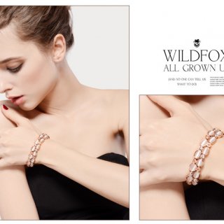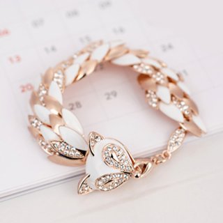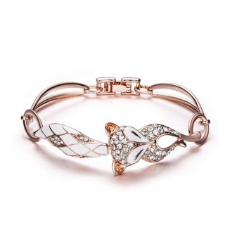 $30.00Fashionably forged from 18k plated Rose Gold, a lustrous fox encrusted with man made diamonds wanders around your wrist in elegance. Chain length 17cm. Match with the Elegant Fox Ring to pull your look together!