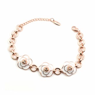 $29.99This 18k Rose Gold plated bracelet is spotlighted by three beautiful shell roses.