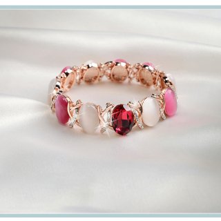 $43.00This bracelet features 360 degrees of beauty! Alternating luscious ivory and rose stones wrap around your wrist to create an effect of utter brilliance. Standing out is a bright, lustrous Gemstone that really makes this bracelet shine! Diameter of 5.2cm