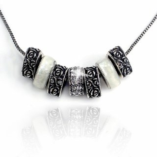 $30.00Adorning a 40cm long plated 18k White Gold chain are seven stunning charms. Four White Gold hearts etched with oxidised roses are intermingled with two ivory shell heart charms set off by a centered man-made diamond encrusted heart! Each charm is individually crafted and when merged, perfect the piece. Limited quantity available! Heart Charms: 1.0 x 3.5 cm Length: 40 cm