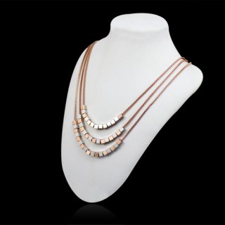 $30.00Three generous 40cm long plated 18k Rose Gold chains hold dozens of 18k Rose Gold and 18k White Gold cubes that form a immensely elegant neckpiece. Pair this with only your best evening gowns for a spectacular and unforgettable effect! Pendant: 0.3 x 0.3 cm (each cube)] Length: 40 cm