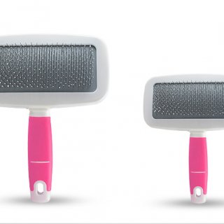 Designed to easily remove mats while pulling out dead hair. It gently removes loose hair, and eliminates tangles, knots, dander and trapped dirt. Works great on dogs and cats with all sizes and hair types! Brushing your dog stimulates the skin to promote healthy circulation and increase shine. Ideal for coat types - medium, long, curly & wiry Your pet will not only look good but feel great too! Our brush grooms and massages for a healthy coat, increasing blood circulation and leaves your pet's coat soft and shiny. Your pet will love being brushed! Item: Width x Length in inches ------------------------------------ Small - Pad: 4" (width) x 2" (length), 3" (handle) Large - Pad: 5" (width) x 3" (length), 3.5" (handle) Item: Width x Length in cm ------------------------------------ Small - Pad: 9.5cm (width) x 5.5cm (length), 8.5cm (handle) Large - Pad: 12.5cm (width) x 6.5cm (length), 9.0cm (handle)