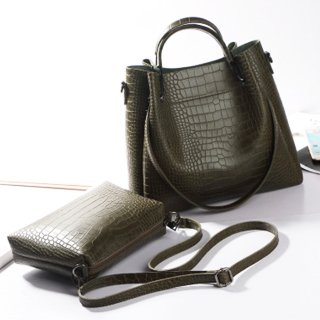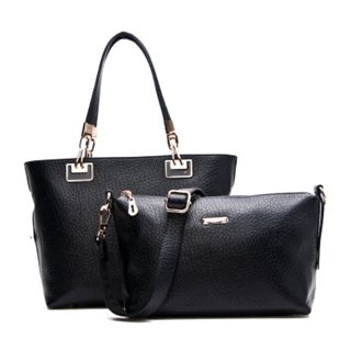 $44.99Doodoo presents us with two matching purses to complete any ensemble! The larger bucket features oversized leather handles affixed with all metal hardware through unique rectangular cutouts. Constructed with authentic split leather, this bag is both resilient and radiant! A large inner compartment ensures you won’t run out of storage space and smaller compartments will help keep you organised! The smaller purse is constructed of identical high quality split leather and features a long adjustable strap so you can shoulder or cross carry. Inside, intricate compartments help keep you coordinated! Large: 27cm x 22cm x 13cm Small: 26cm x 17cm x 11cm