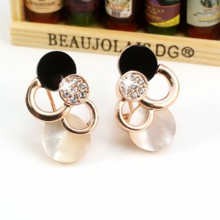$30.00Available in both plated 18k Rose Gold and 18k White Gold, these earrings feature contrasting black and ivory/rose gold circles enlightened by a shimmering circle of perfectly set man-made diamonds! We absolutely adore this style and these are certainly in our regular rotation! 1.5 x 2.7 cm