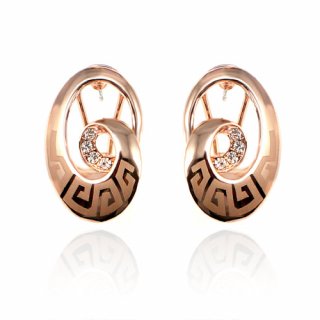 $30.00Spirals of plated 18k Rose Gold create a dizzyingly alluring effect enhanced by a row of perfectly set man-made diamonds. While we typically pair these with an evening gown, we also think they go great with more casual attire! 1.5 x 2.2 cm