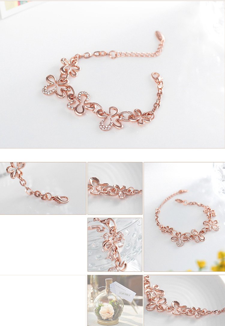 A playfully dainty collection of 18k Rose Gold plated petals intertwine to create this enchanting bracelet. The chain reaches 17cm in length with an additional extension. We absolutely love pairing this with fun summer dresses!