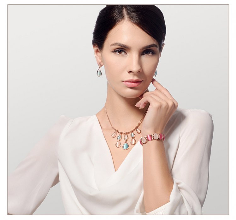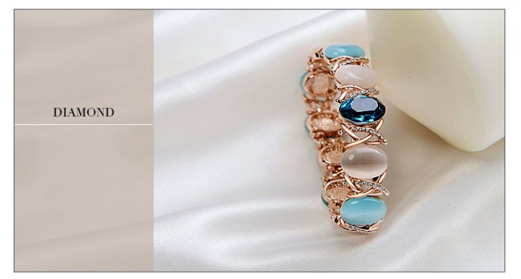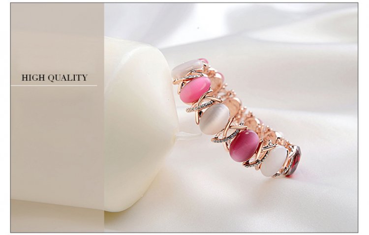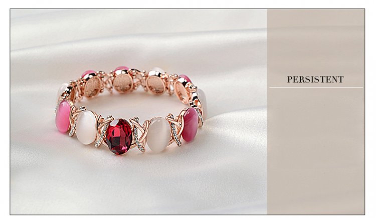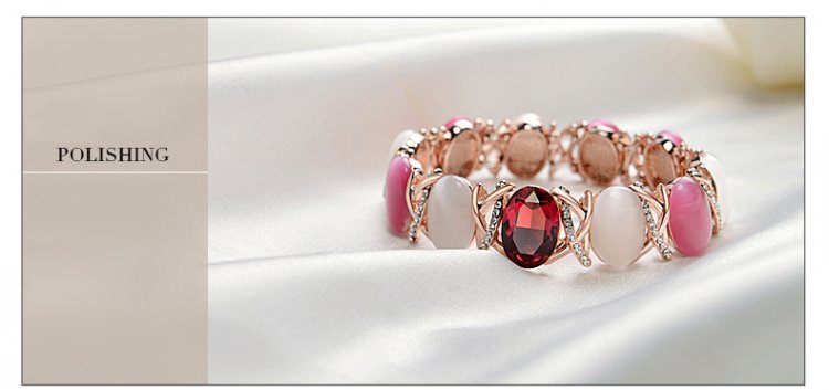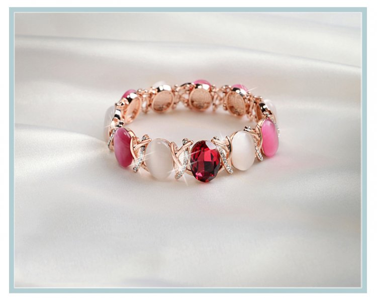 This bracelet features 360 degrees of beauty! Alternating luscious ivory and rose stones wrap around your wrist to create an effect of utter brilliance. Standing out is a bright, lustrous Gemstone that really makes this bracelet shine! Diameter of 5.2cm