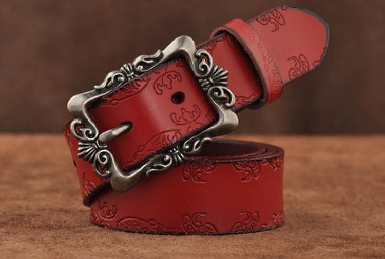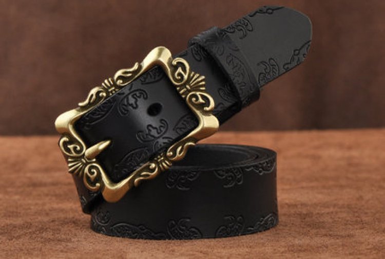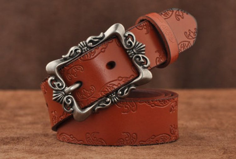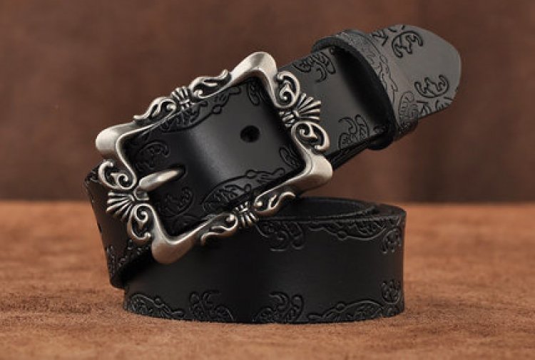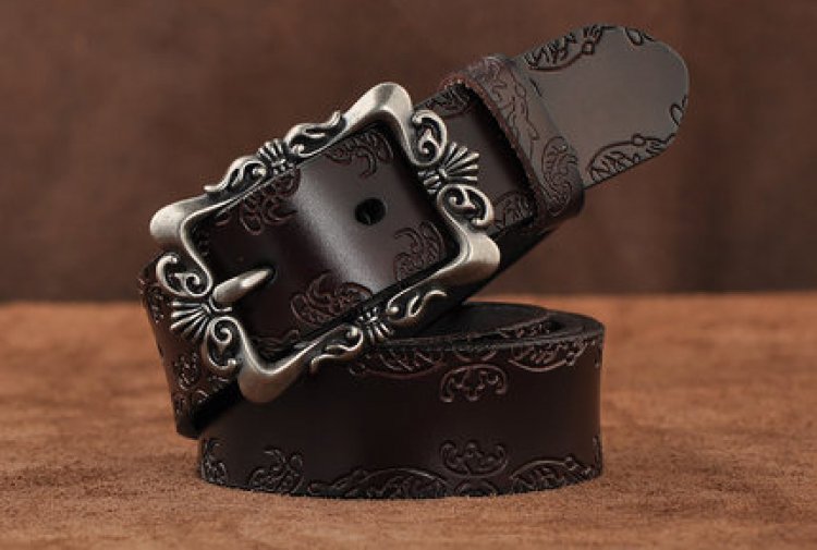 No outfit is complete without the perfect belt! This 3.2cm wide belt is constructed of sturdy split leather embossed with a beautiful design. Complementing the leather is a large all metal buckle that is etched to perfection!
