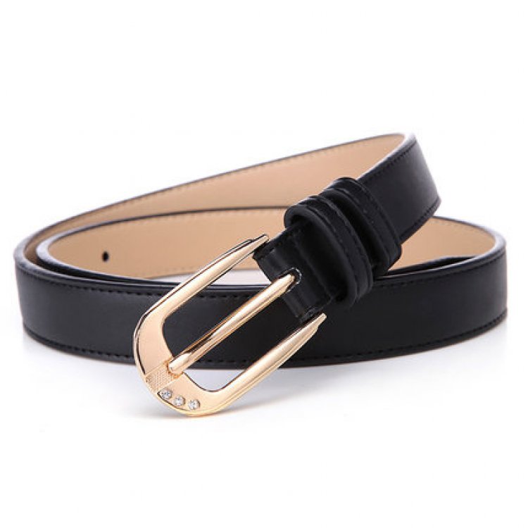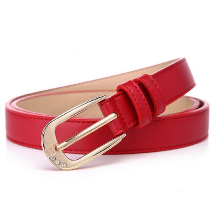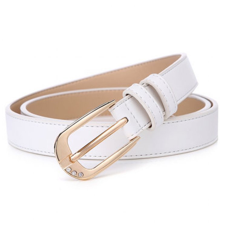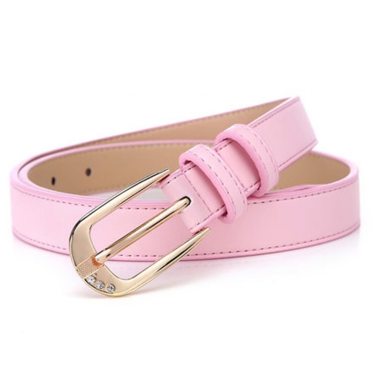 Available in an assortment of alluring colors, this authentic split leather belt features all metal hardware accented with tasteful man-made diamonds.