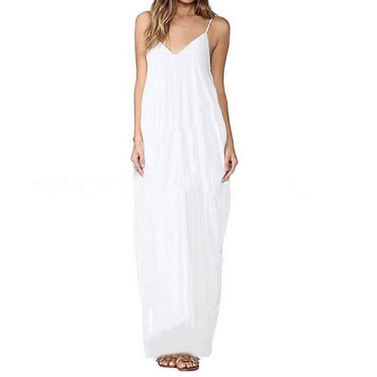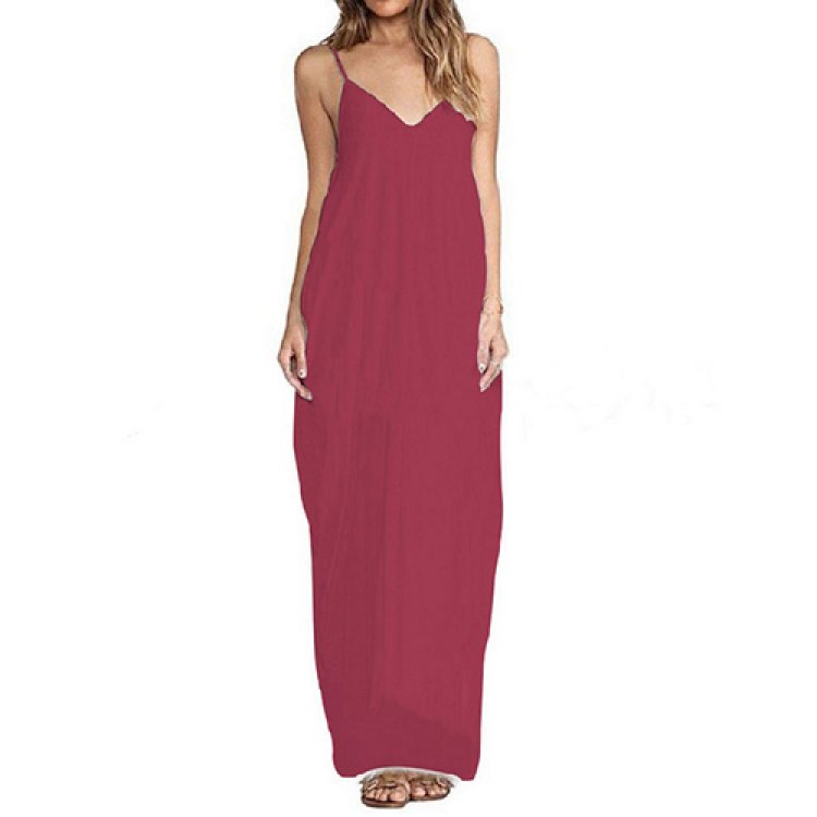 Chill out this summer with our exclusive Spaghetti Strap Slim Flowing Maxi Dress.