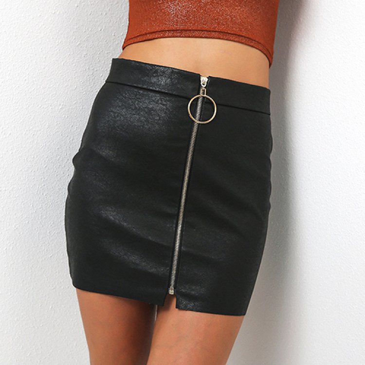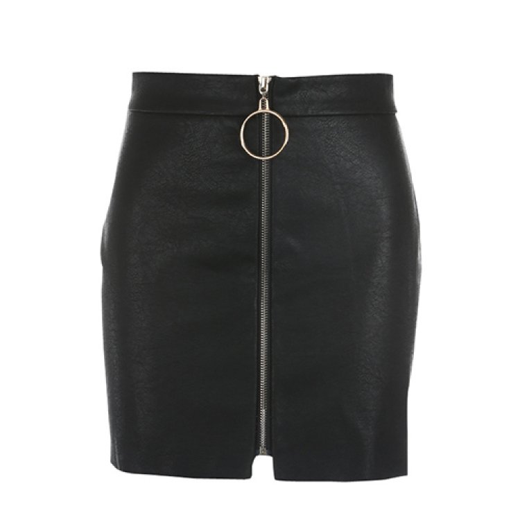 Faux Leather Front Zip Mini Skirt