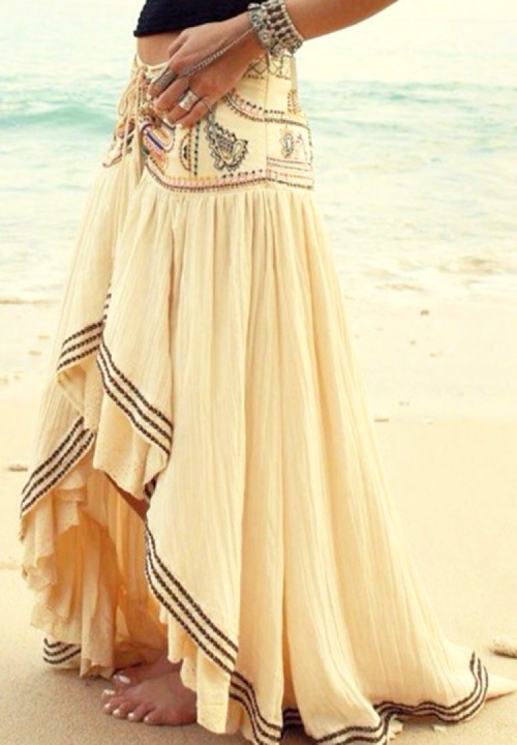 Slip into this ornate Asymmetric Split Maxi Bohemian Skirt to look your very best!