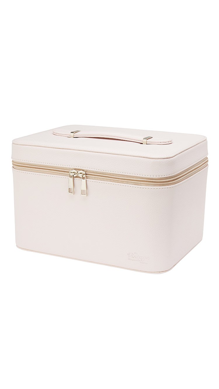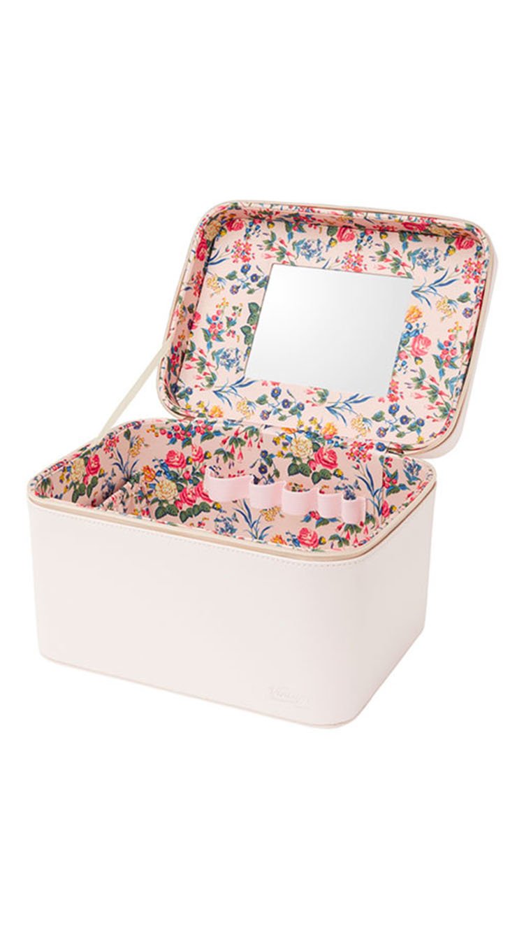 Step back in time with this gorgeous dusty pink, pebbled train case. Lined with our signature floral pattern with pockets and loops to keep all your girly goodies safe, this train case is the perfect dressing table topper and holiday travel essential! With a mirror inside you’ll always be able to look glam on the go.