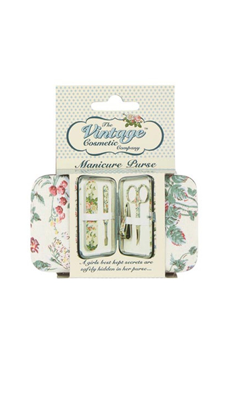 Manicure Purse – Vintage Style Floral Design White
