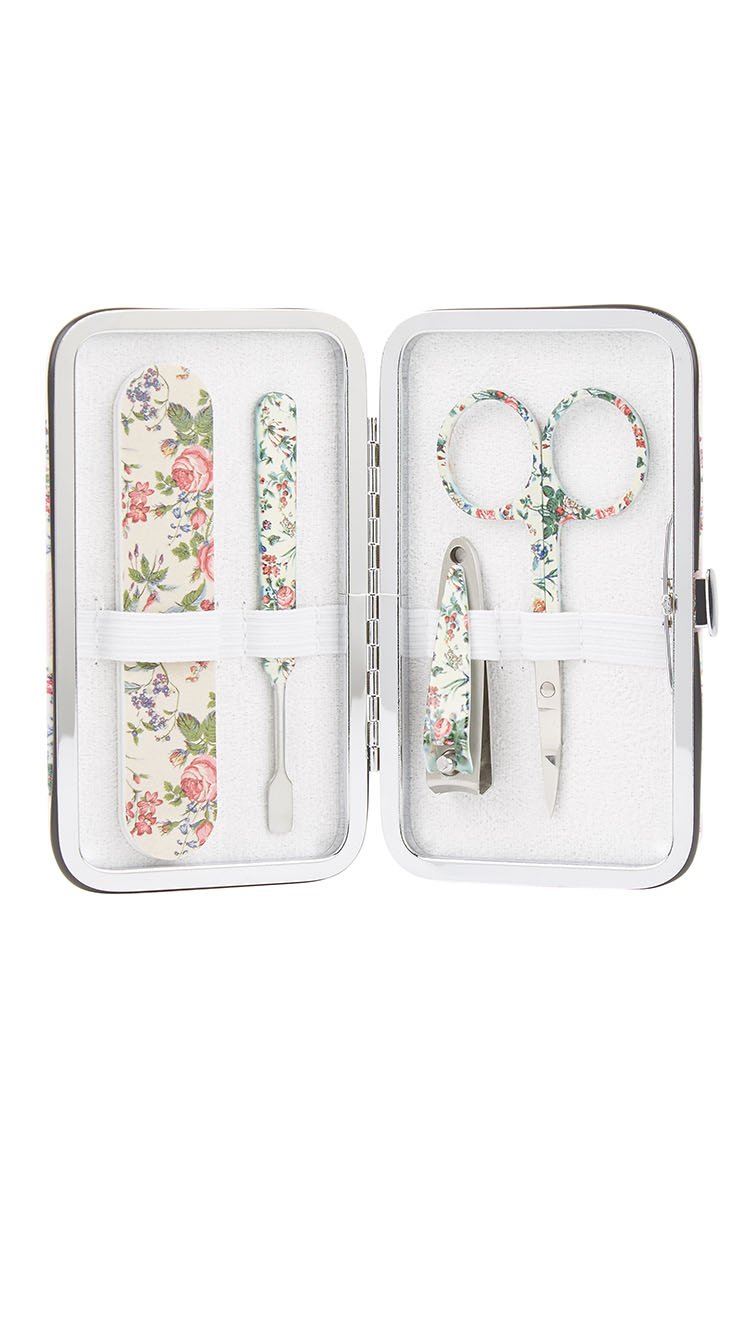 This quintessentially British Manicure designed in a pretty pink Union Jack print, holds 4 essential tools for a perfect manicure so your nails will always be kept neat and tidy. Perfect for at home or on the go and also makes a cute accessory for when you’re out and about. Containing 4 tools covered in our signature floral print, Fingernail Clippers for precision clipping, Curved Scissors for accurate snipping, a Cuticle Tool for pushing back cuticles and cleaning underneath the nails and an Emery Board to shape and smooth nails. This is also suitable for gel and acrylic nails.