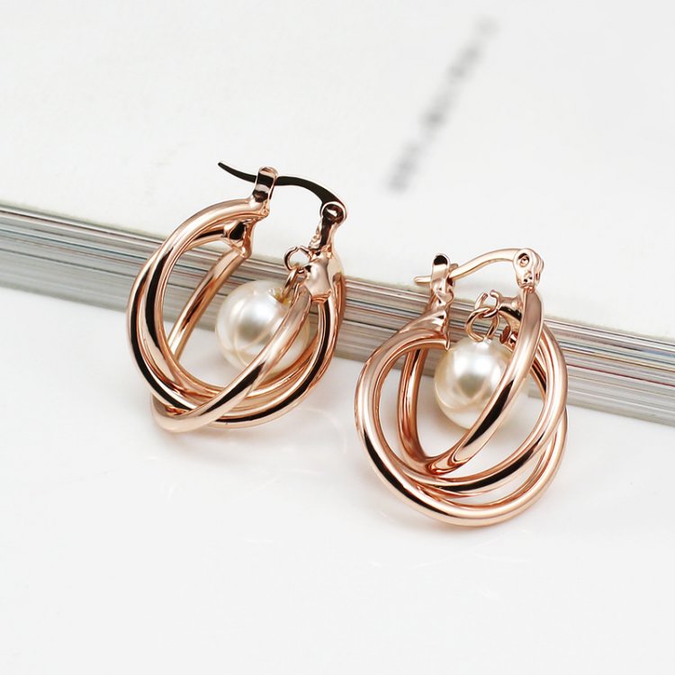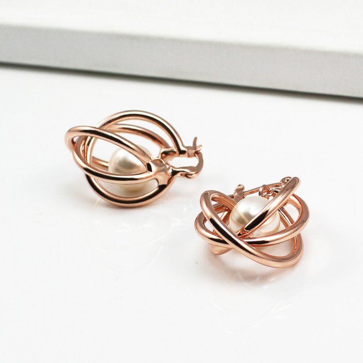 Flawless pearls hang daintily and are wrapped by meticulously crafted 18k Rose Gold plated bands. These earrings ooze class and perfect the elegant look you're going for! 2 x 2.8 cm