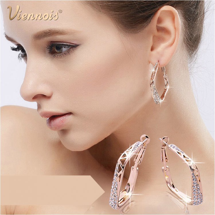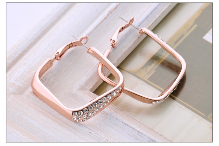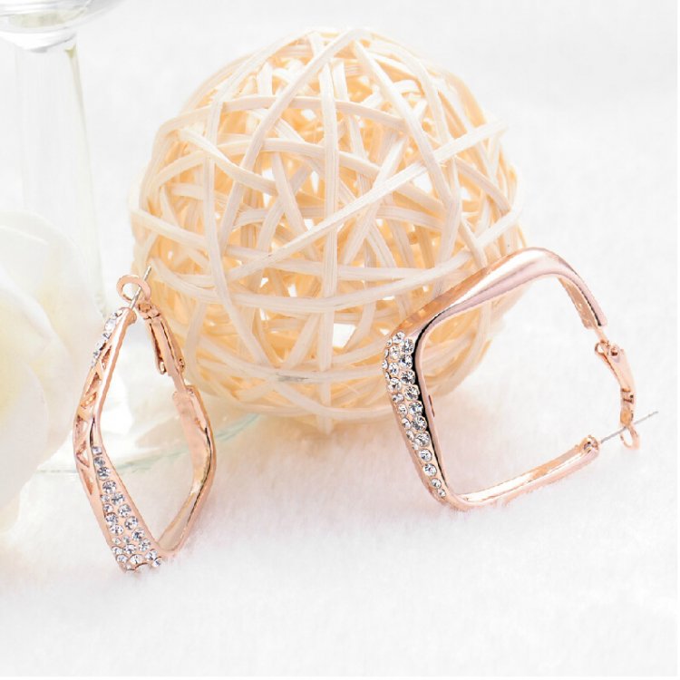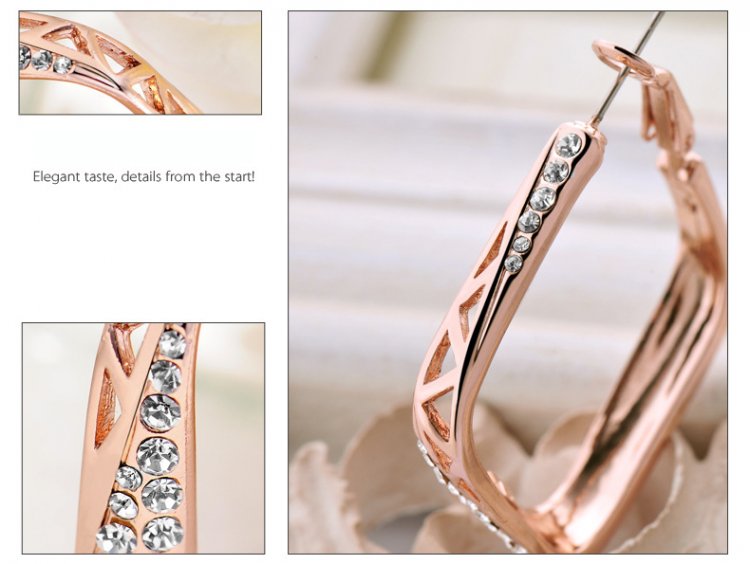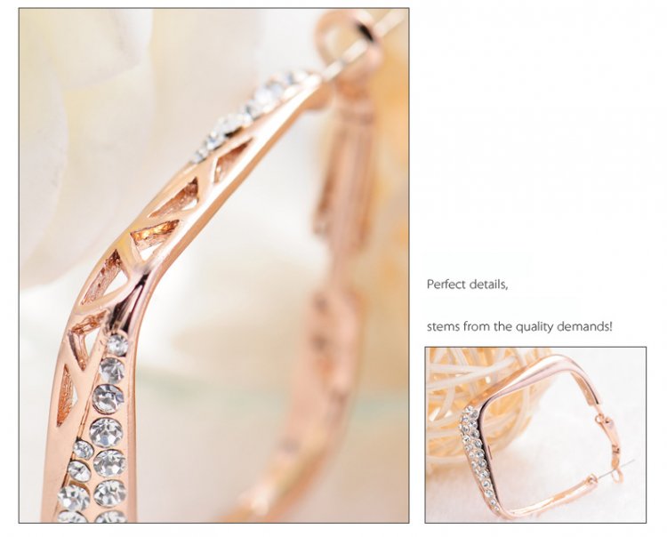 Wide diamond danglers skillfully crafted with 18k Rose Gold (plated) feature geometric cutouts and are accented by carefully set man-made diamonds. These earrings are certainly head-turners and we love how they catch light at just the right moments! 4 x 4.7 cm