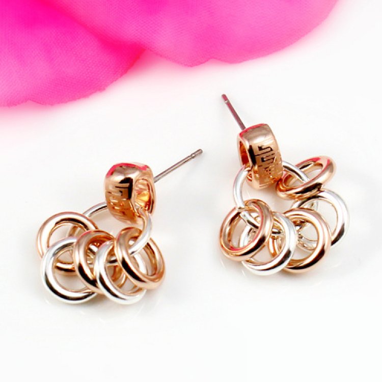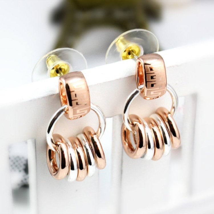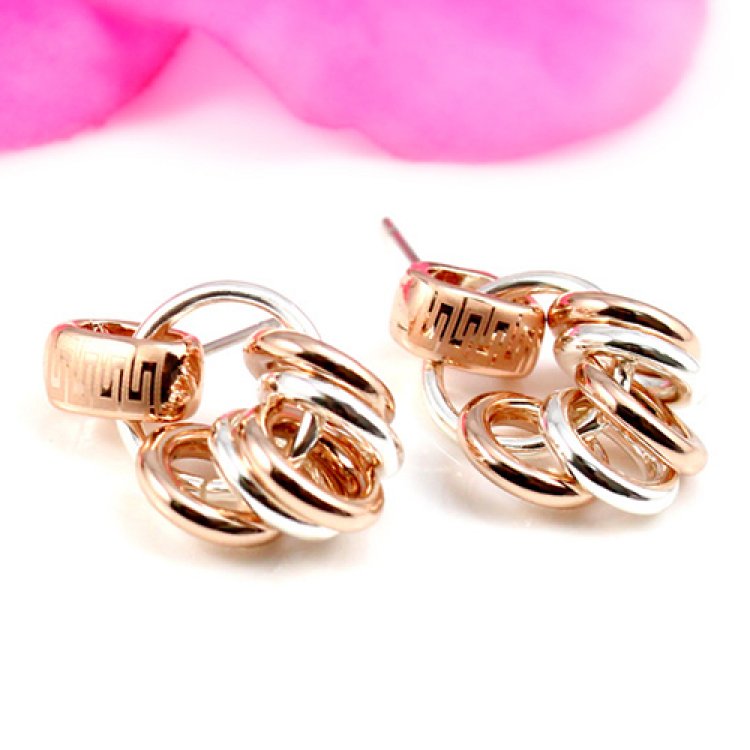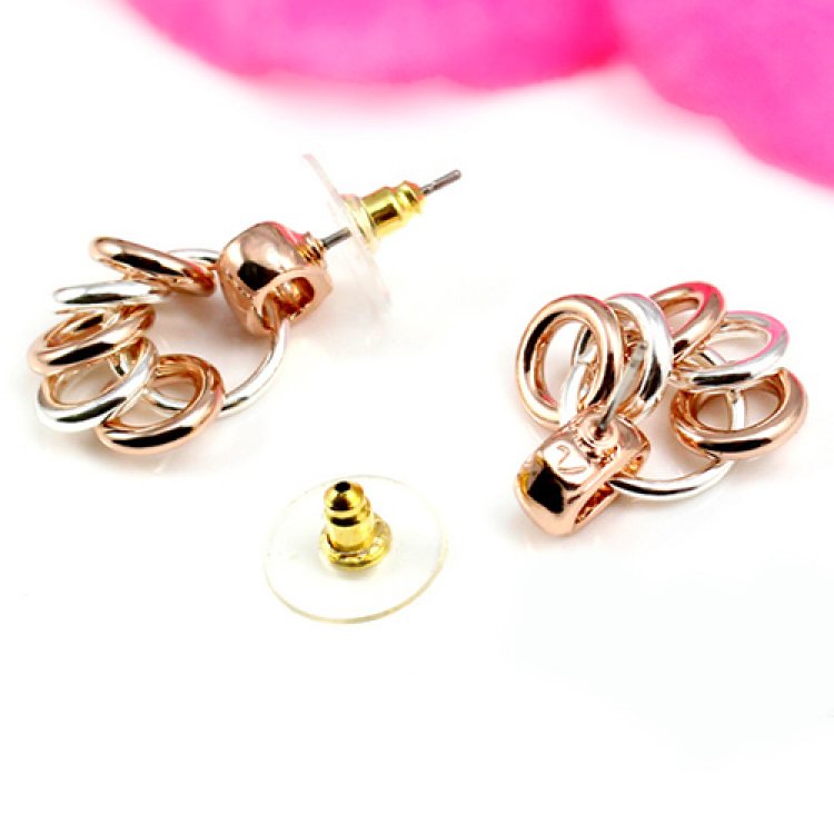 Alternating rings of white and rose gold create an amazing effect! These earrings pair beautifully with an evening gown.
