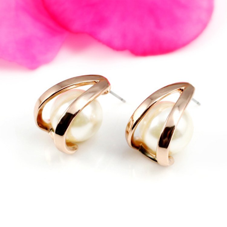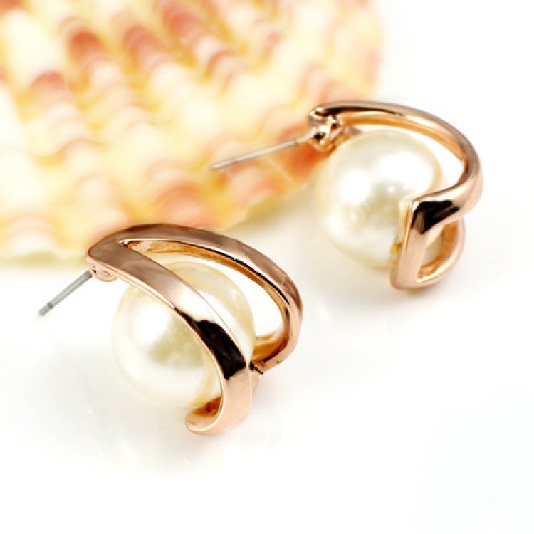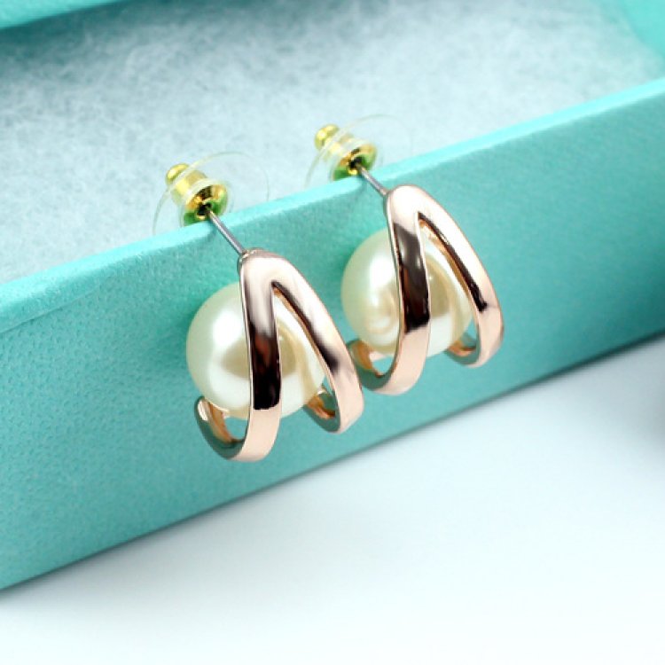 Faux pristine pearls are set in a beautiful rose gold frame. Elegance and class in a tiny package!