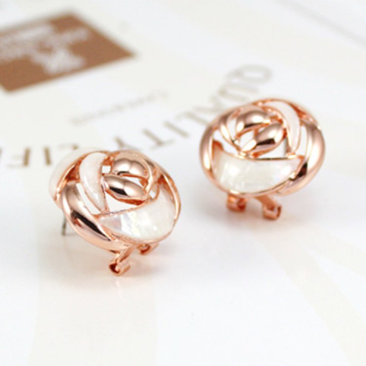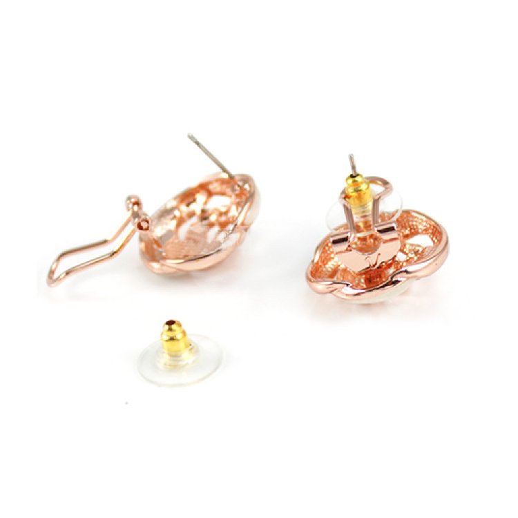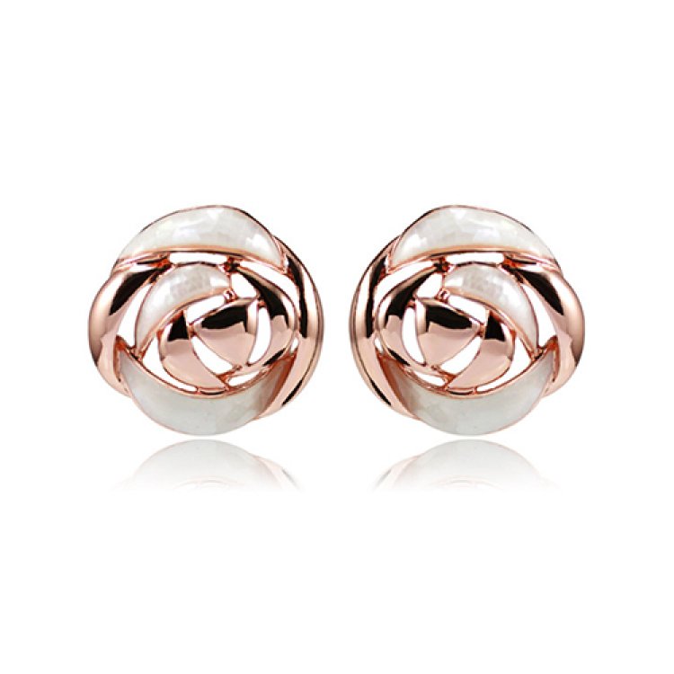 18k Rose gold is beautifully molded into two ornate roses, further accentuated by immaculately set shell.