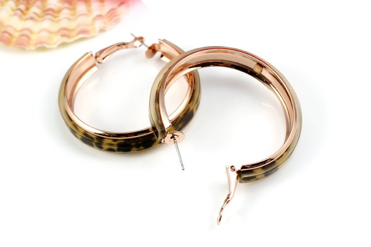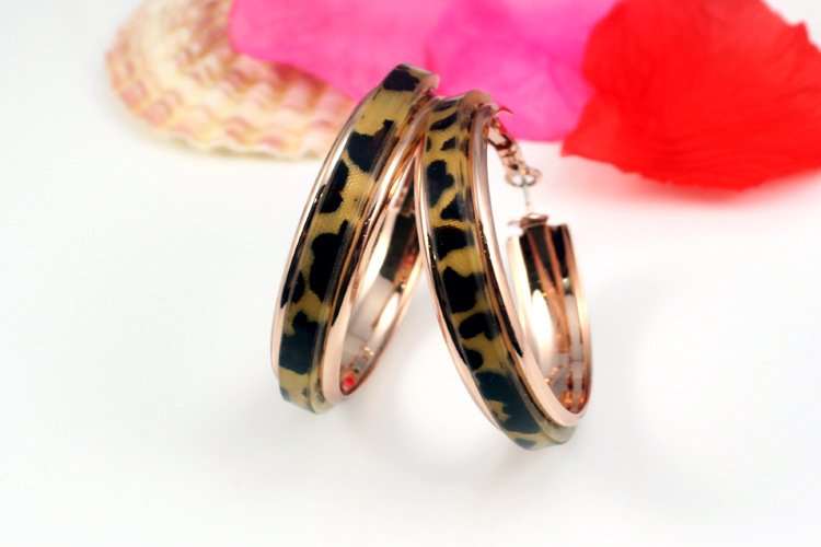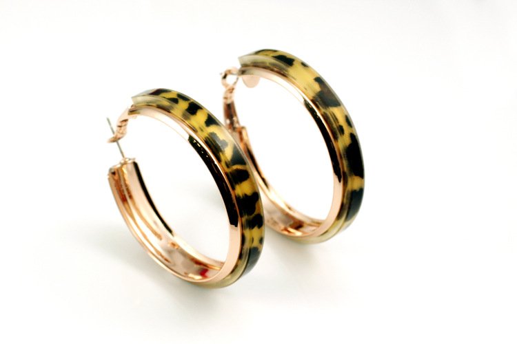 Speed up your sexiness with these fantastically seductively sensual hoops! Covering 18k plated Rose Gold is an inviting acrylic leopard print. 0.8 x 4 cm