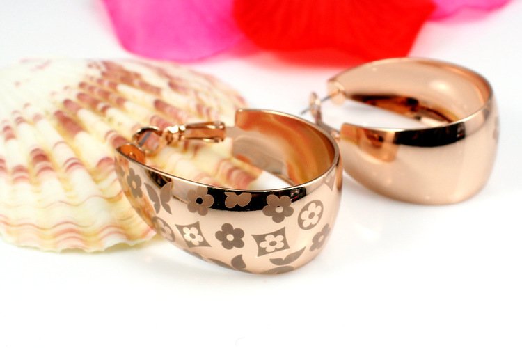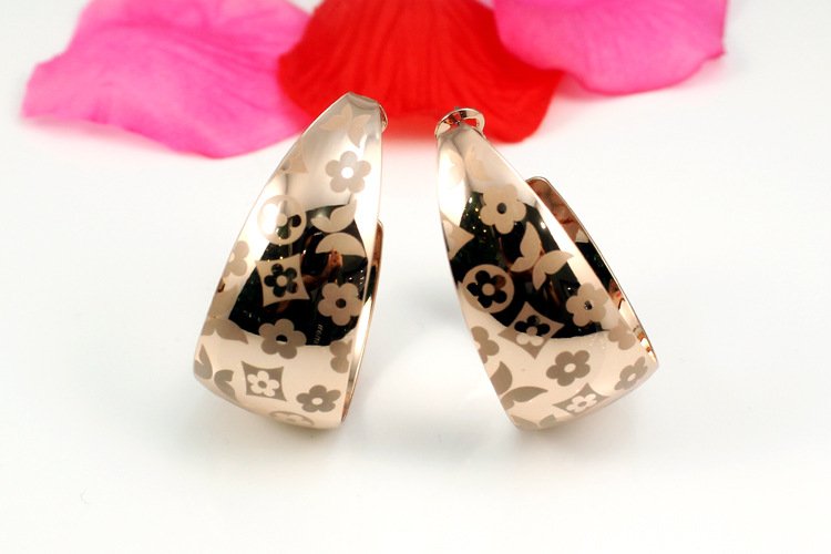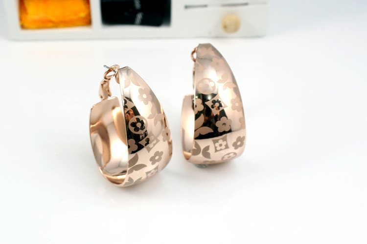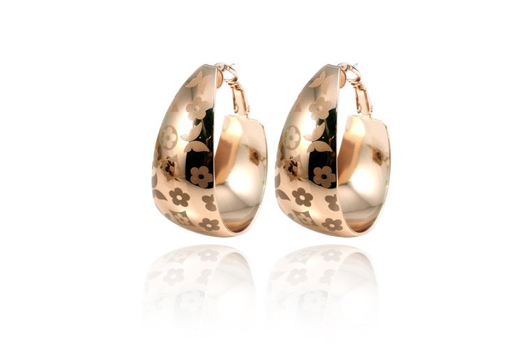 Two generously sized plated 18k White Gold or Rose Gold swirls gracefully hoop around your ears. A marvellously charming array of flower petals and butterflies is etched into the face of these earrings boost the appeal of these! We love them and know you will too! 1.6 x 3.8