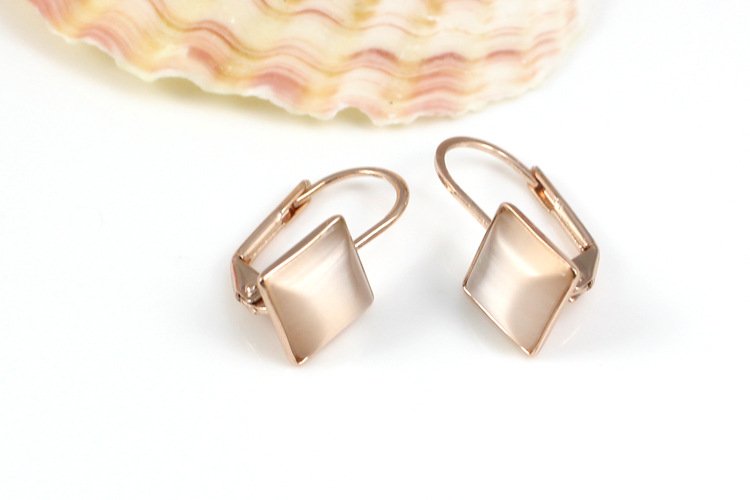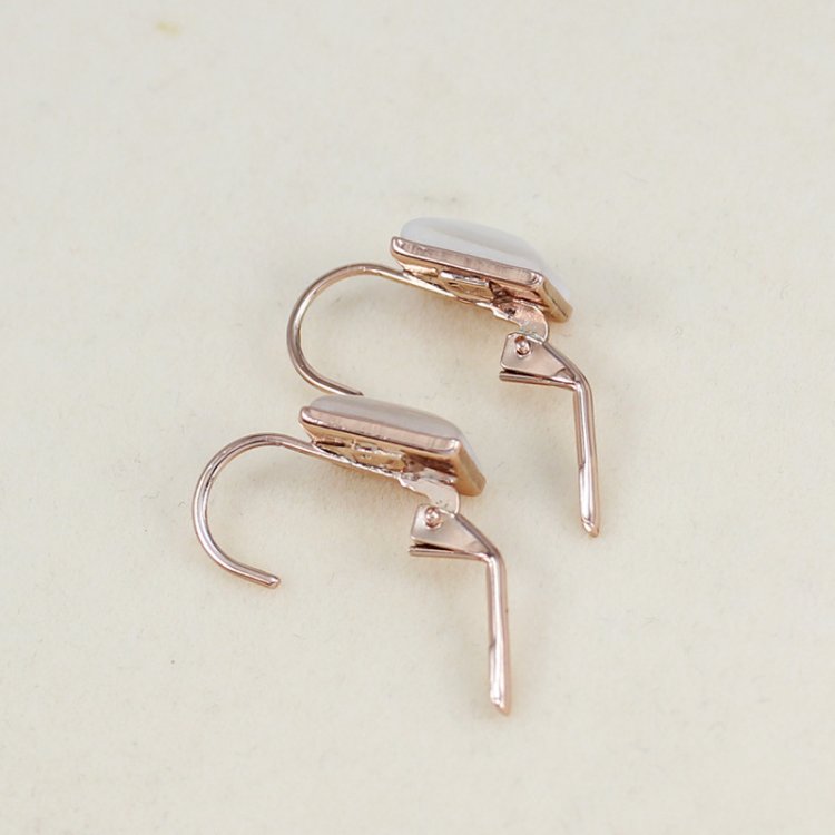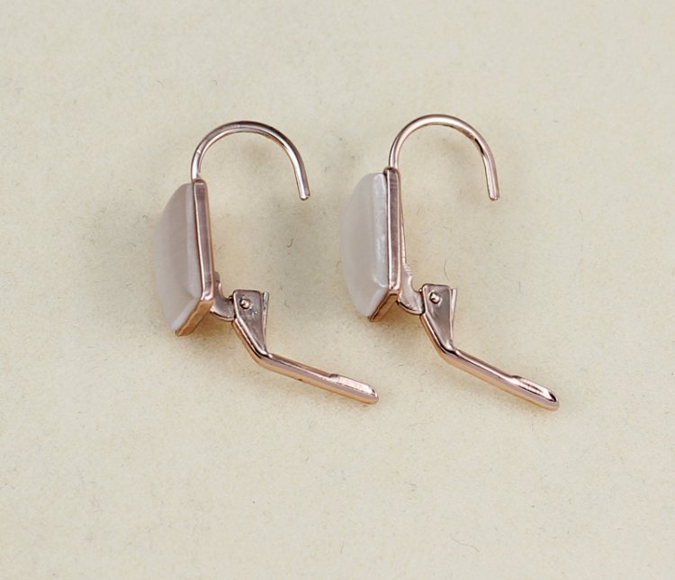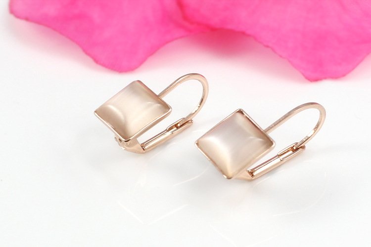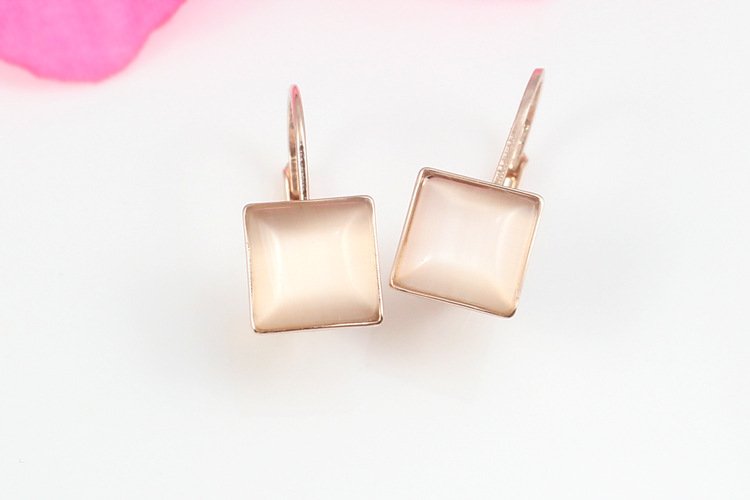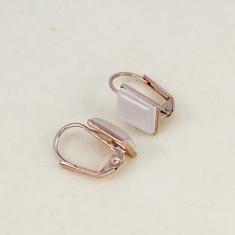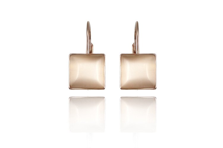 Constructed of plated 18k Rose Gold, these earrings exude classiness! Two large symmetrical square Rose Gold Opals beautify the face of these earrings giving a sophisticated ambience to your outfit! 0.8 x 1.8 cm