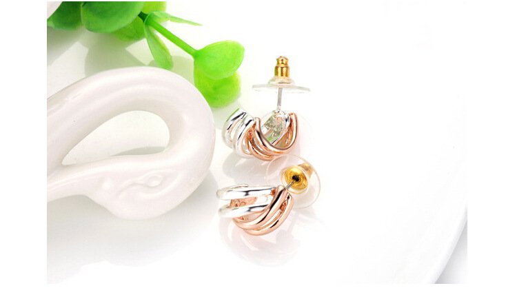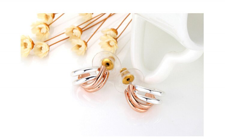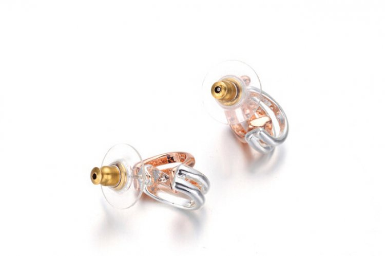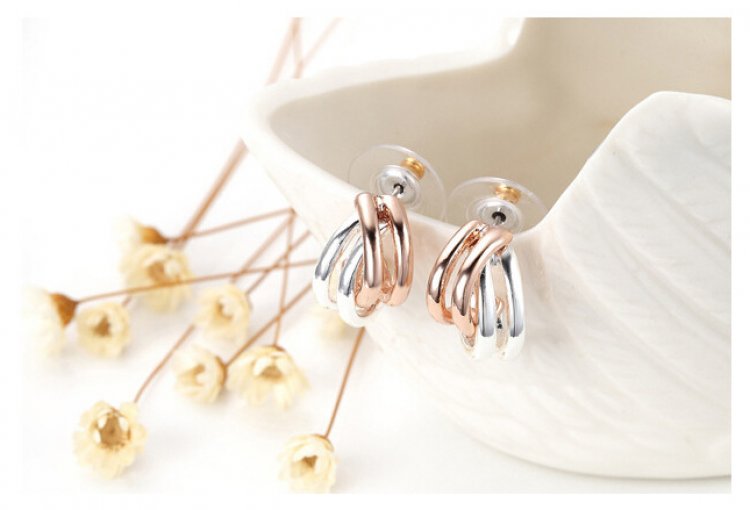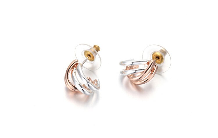 Plated 18k Rose Gold and 18k White Gold intertwine to create an exquisite effect! Display your affinity for classy sophistication with the Twines of Gold Earrings. 1 x 2 cm