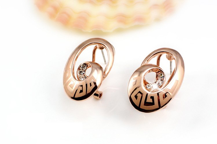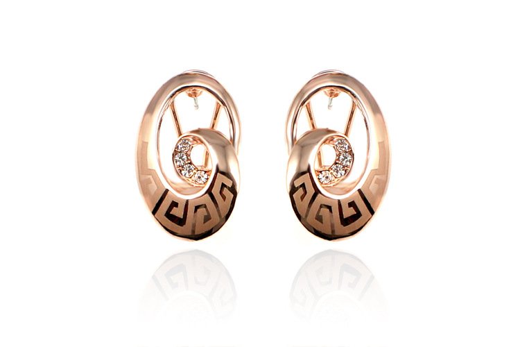 Spirals of plated 18k Rose Gold create a dizzyingly alluring effect enhanced by a row of perfectly set man-made diamonds. While we typically pair these with an evening gown, we also think they go great with more casual attire! 1.5 x 2.2 cm