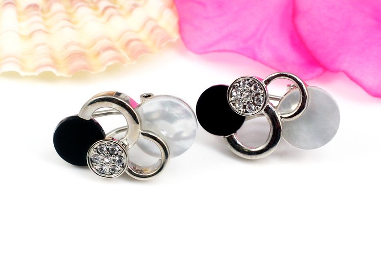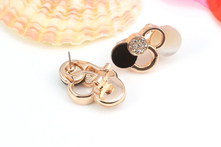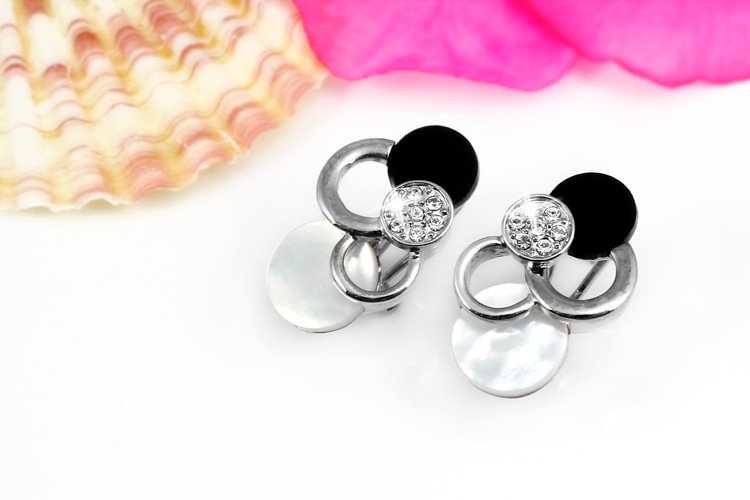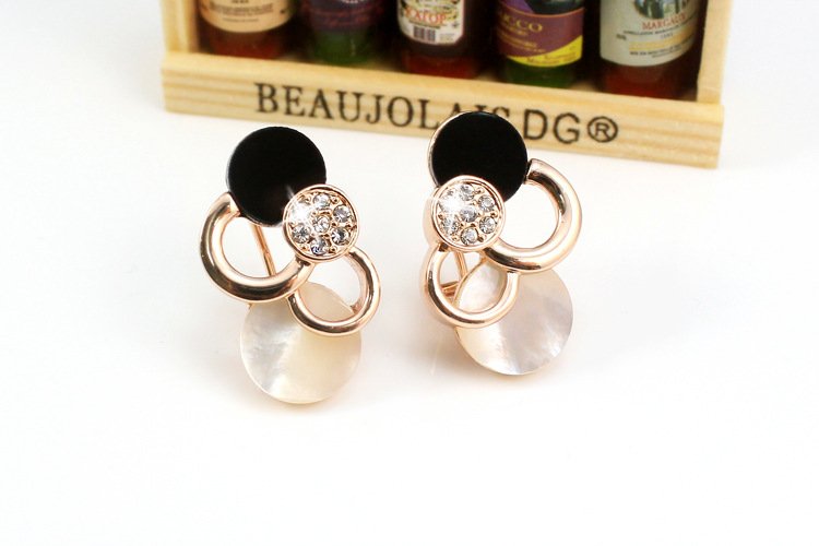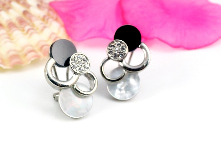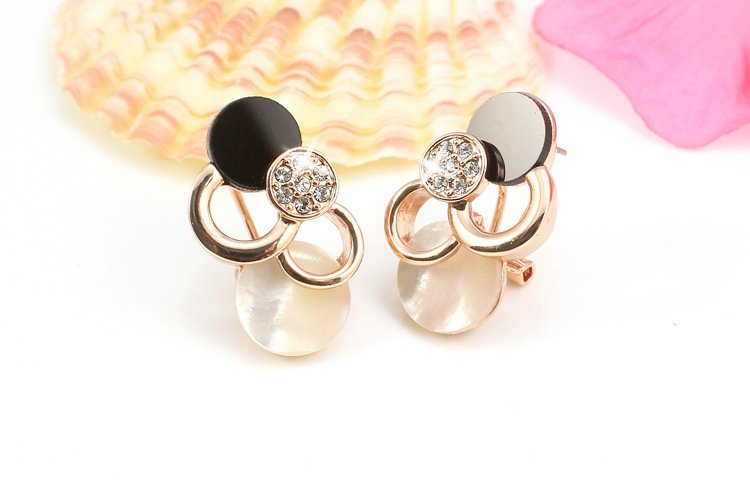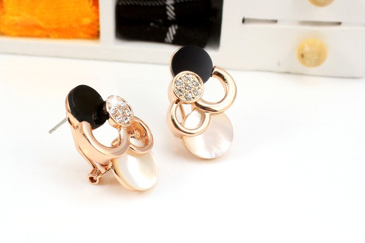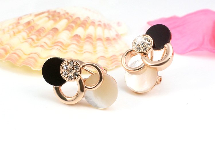 Available in both plated 18k Rose Gold and 18k White Gold, these earrings feature contrasting black and ivory/rose gold circles enlightened by a shimmering circle of perfectly set man-made diamonds! We absolutely adore this style and these are certainly in our regular rotation! 1.5 x 2.7 cm