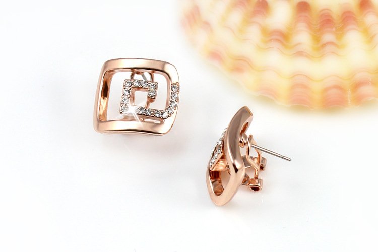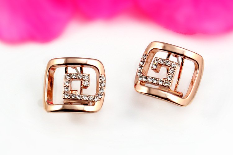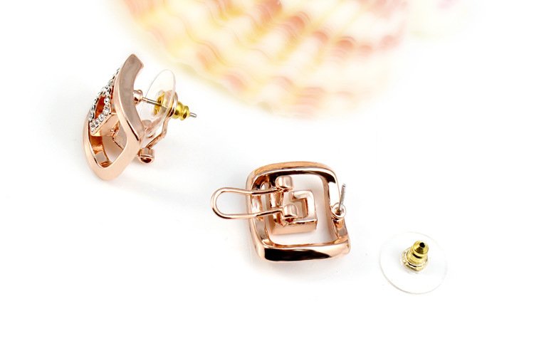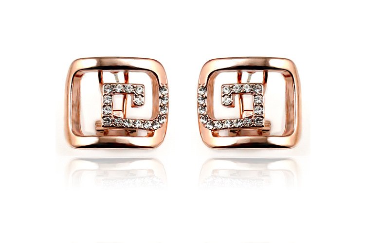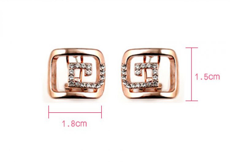 Thick plated 18k Rose Gold bands adorn these geometrically shaped earrings. A band of impeccably placed glistening man-made diamonds enhance the sheer artistry of the design! 1.5 x 1.8 cm