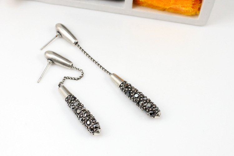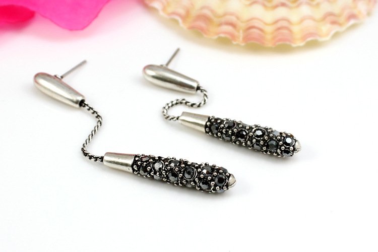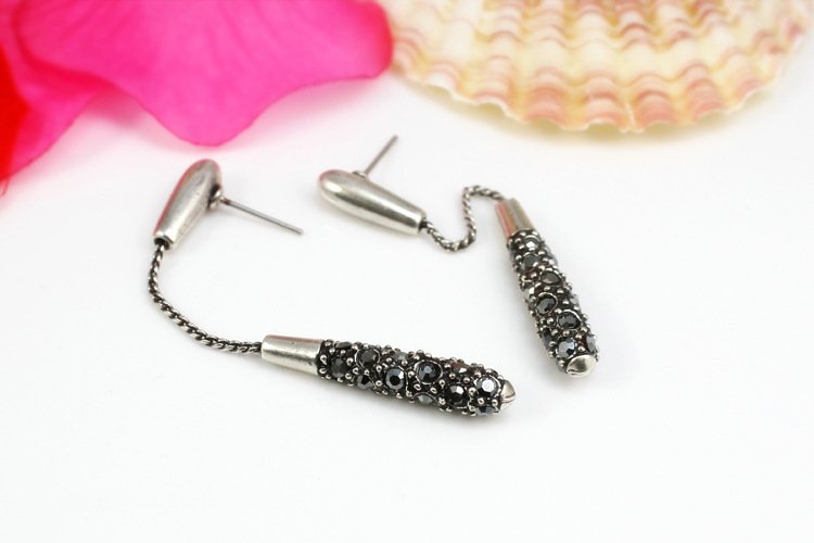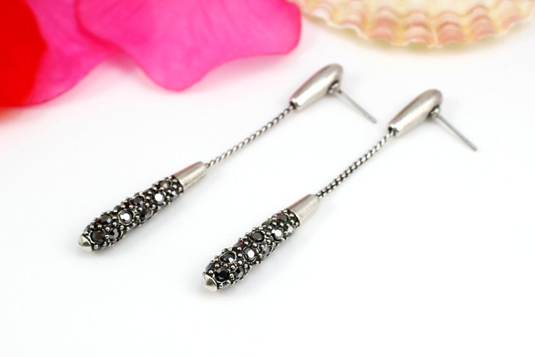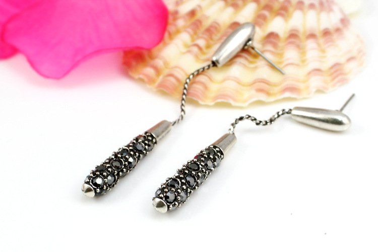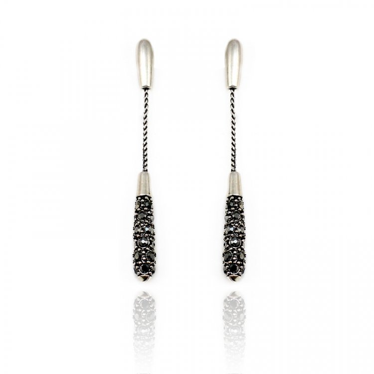 Dangling on the ends of 18k White Gold are a plethora of stunning black rhinestones. These earrings hang low and gracefully sway as they dazzle admirers. 0.5 x 6.3 cm