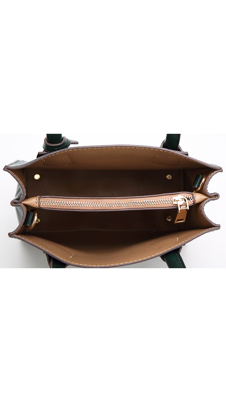 This authentic split leather satchel is absolutely ravishing. It comes with dual straps, consistently perfect stitching and a finished beige leather interior with three generously sized pockets - the middle one being zipped.