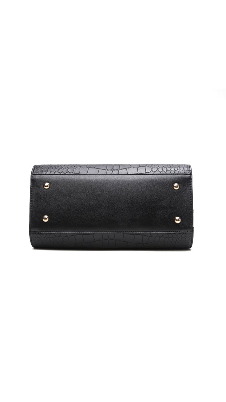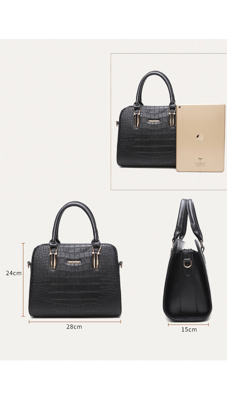 Minmin wows us again with this stylishly dapper bag. With a large formed bottom, lush authentic patent leather sweeps up gracefully to a recessed zippered top. Two thick leather straps are held by artistically forged hardware. Inside, a large silk lined compartment provides ample storage with privacy pockets on each side. - 24cm x 28cm x 15cm - Patent split Leather