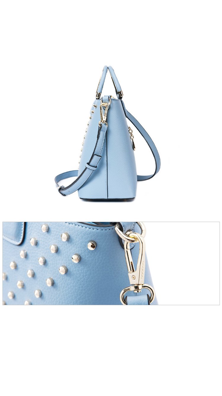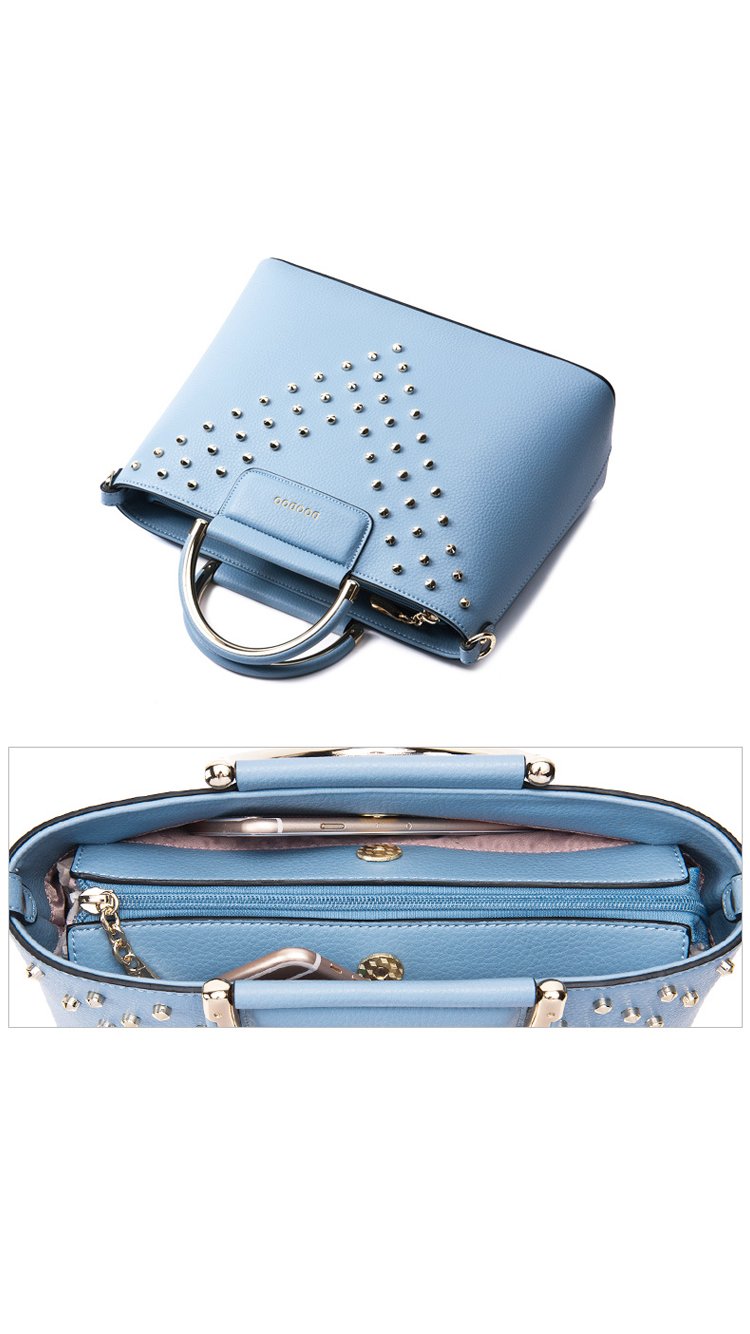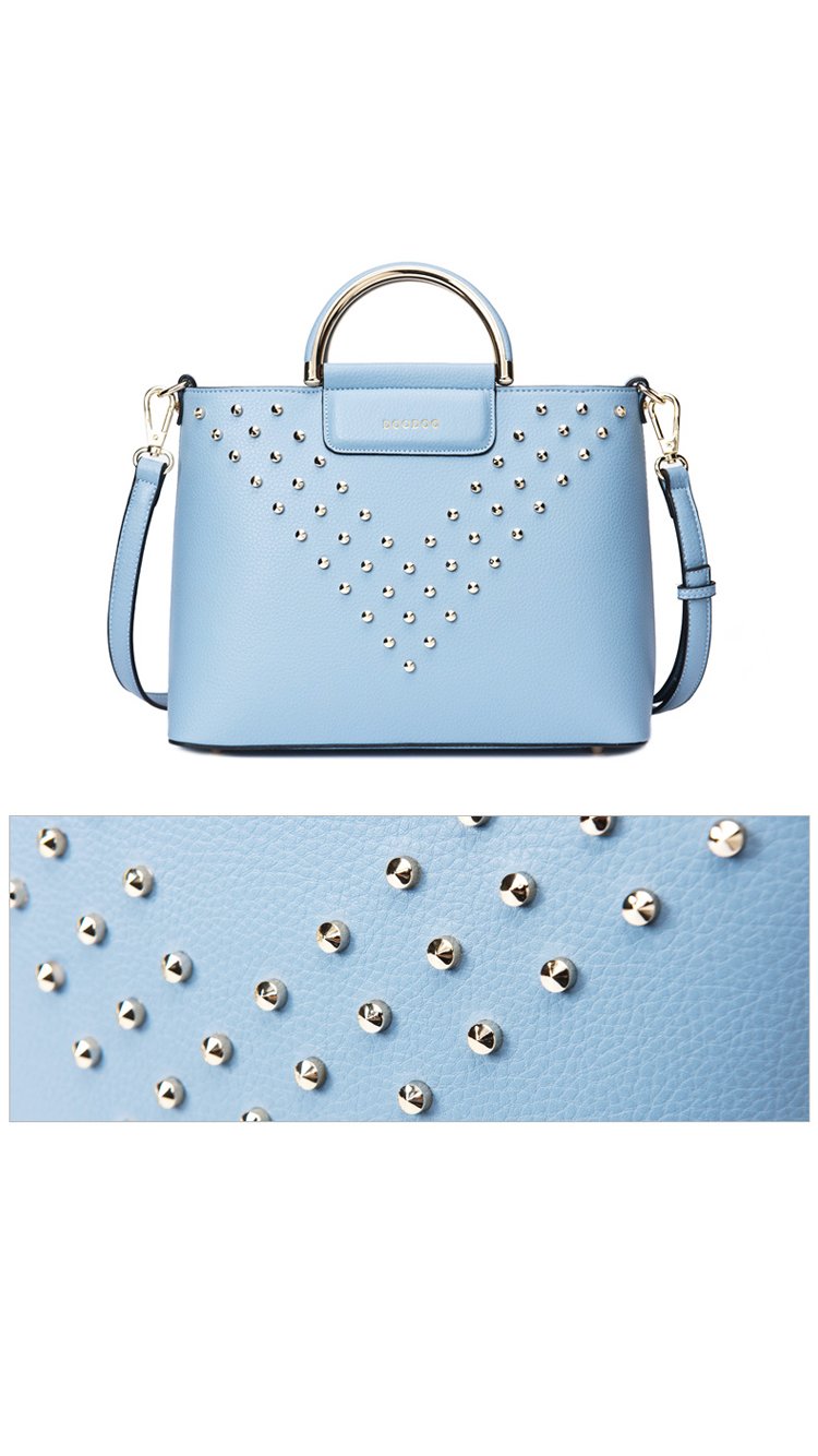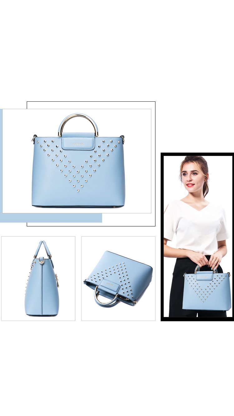 This exquisite split leather bucket features a decretive v formed of rows of metal hardware. We absolutely adore the metal handles with leather padding. An included 120cm long adjustable strap allows you to cross shoulder this bag as well! On the backside of this purse there is a convenient zipped pocket that provides easy access. Inside the fully zipped main compartment there are multiple zipped privacy compartments and two large document portions. 31cm x 23cm x 13cm