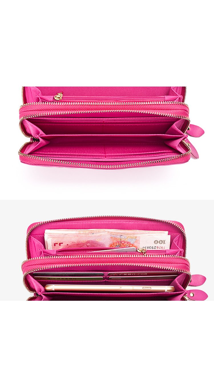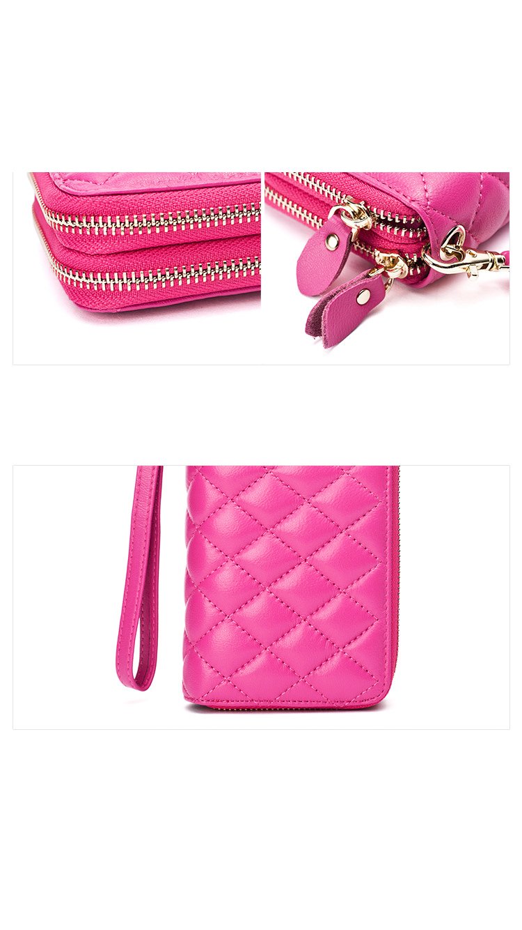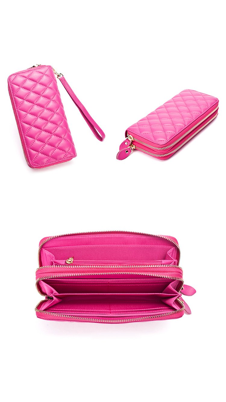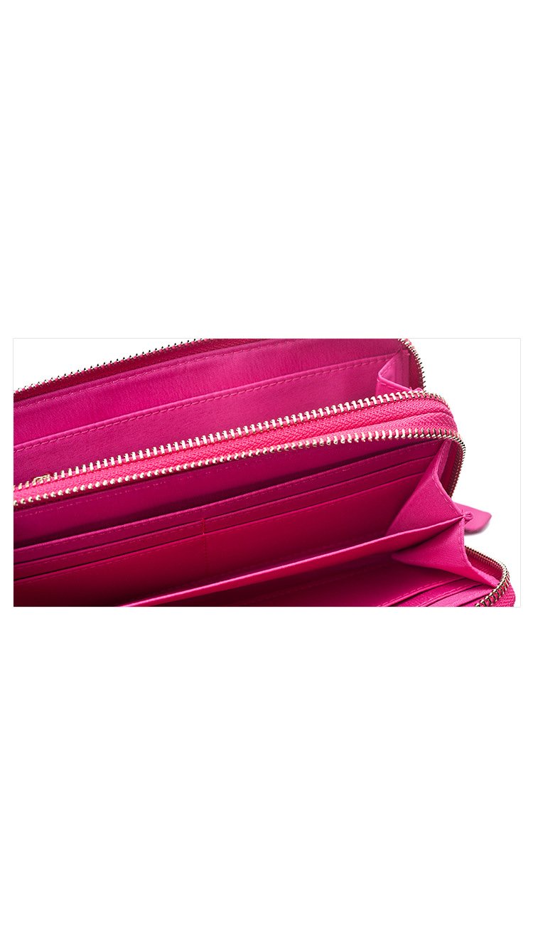 This hot Sheepskin leather wallet has two zipped pockets with additional sections for cards, cash, phones and any other personal items you’re carrying! Featuring YKK zippers and flawless stitching make this one of our hottest sellers of 2017! Available in pitch black, blazing pink and luxurious red.