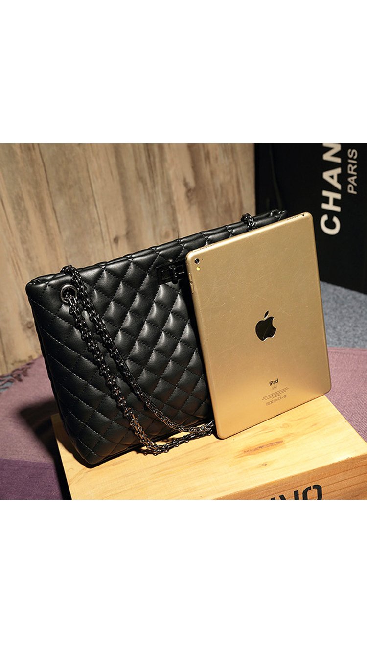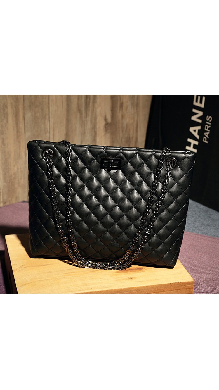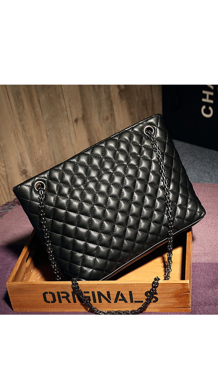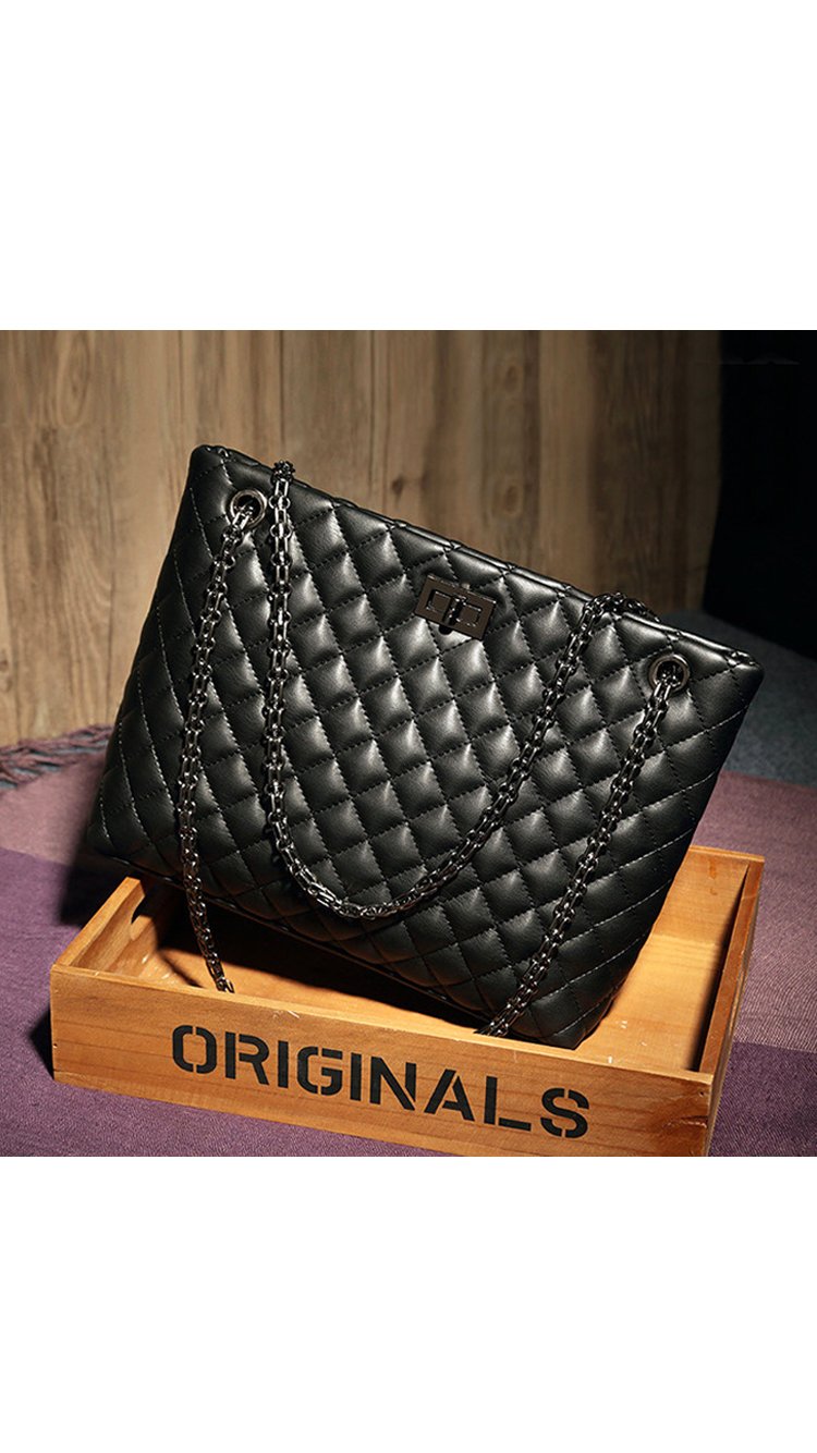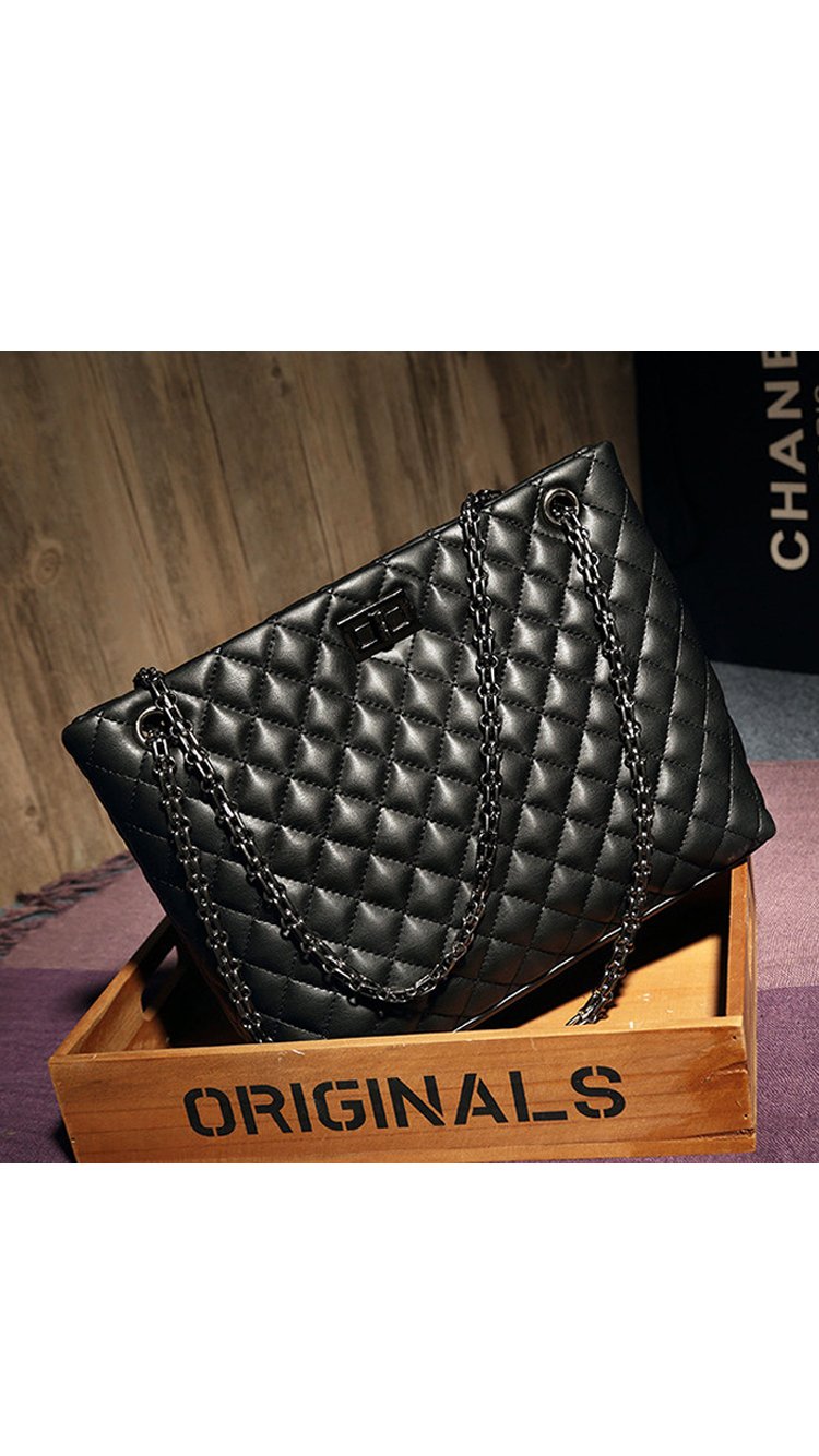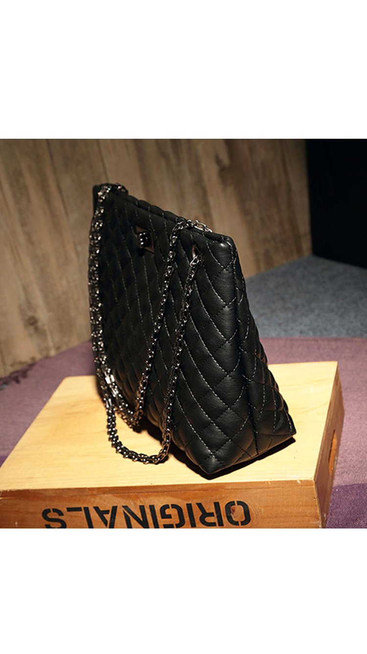 Beautiful cross stitching compliments the supple black authentic split leather. Two ornate metallic shoulder straps are attached through two symmetrical openings and are reinforced with all metal hardware. Inside, a silky interior reveals three large storage compartments. - 29cm x 23cm x 10cm