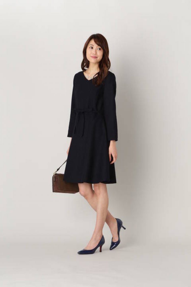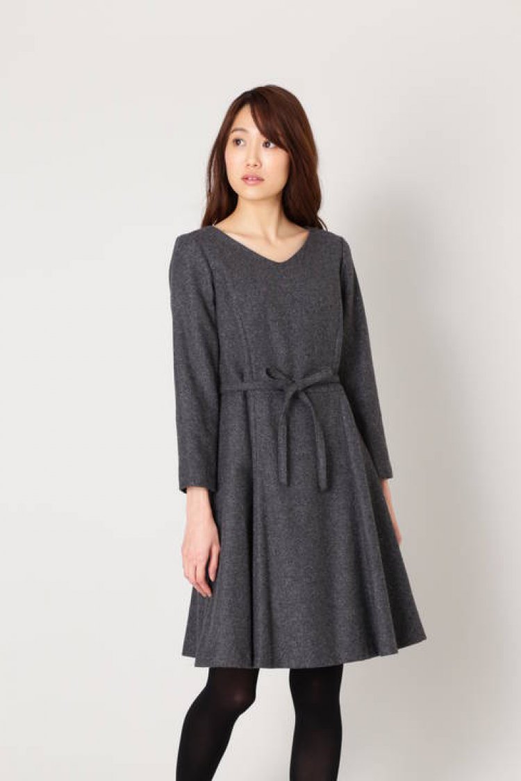Feminine drifting flare dress. There is a seasonal brushed material of lame mixed, design leave a good impression to the place where neat.