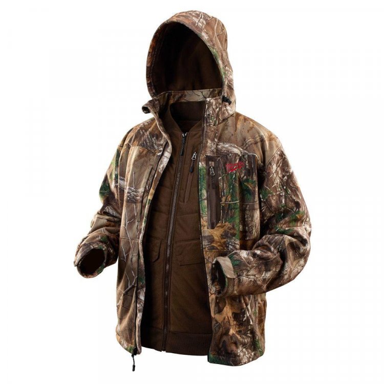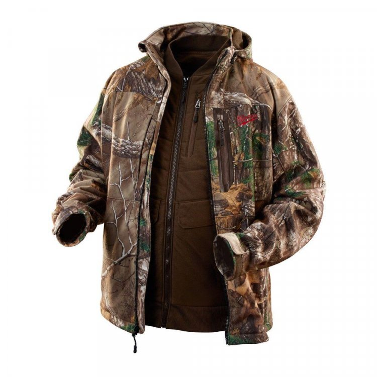 Milwaukee M12 3-in-1 Heated Jacket: Powered by M12 REDLITHIUM Battery Technology, the Milwaukee M12 3 in1 Heated Jacket combines a Heated Vest and weather resistant Outer Shell to set a new standard in cold-weather performance and versatility for the outdoorsman. Worn separately as a heated mid-layer or combined with the outer shell, the Heated Vest integrates (5) carbon fiber heating elements and advanced fabric-layering technology to distribute and maintain heat across core body areas and pockets. The wind and water resistant shell features noise-reducing fabric with Realtree Xtra Camo and high-loft insulation to maximize warmth while blending in with the natural colors of the fall, winter and early spring. - Wind/water resistant and noise reducing outer shell and insulated heated vest with thermal fleece lining work together to deliver ultimate warmth, performance and versatility for the outdoorsman - Carbon fiber heating elements provide adjustable heat to core body areas and pockets - Outer shell features removable hood, access to heated vest pockets and area to display hunting tag - Up to 8 hours run-time on M12 REDLITHIUM 2.0 battery - M12 battery holder with 2.1A USB port to charge electronic devices - Washer and dryer safe