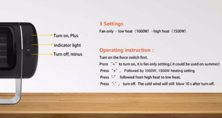 Adjustable Thermostat Electric Heater:1500-watt high heat, 1000-watt low heat, fan only. 50 degrees elevation Space Heater: Easy-to-use controls with buttons. Oscillates for wide area heating. Warming Ceramic Heater Fan: PTC ceramic heating technology, heat-up within seconds. Big fan design, High-efficiency air convection. Safety Personal Heater: V-0 Heat-Resistant Plastics, safety protection, tip over protection, ideal for home/school /office personal use. Portable Mini Fireplace Heater: Mini size, back recessed handle, easy to carry and move. Specifications : Color: White, Black, Green Voltage : 220V 50Hz Power : 1500w high heat/ 1000w low heat Plug: US plug (will also come with a mini&safe adaptor according to your country) Application area: about 15㎡ Heating Element: PTC Material: ABS, Aluminum Alloy Certification : CE,CB,CCC Dimensions : 8.8 x 4.7 x 6.7-inch (22.4 x12.0 x 17.0-cm) Package Includes : 1 x Portable Electric Heater 1 x User Manual