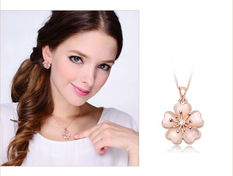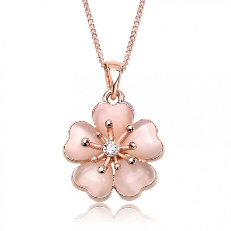Wow your admirers with this devastatingly gorgeous piece. Featuring meticulously shaped heart Opals surrounding a cat's eye rhinestone, this 18k Rose Gold plated necklace is sure impress! Pendant: 2.7 x 1.9 cm Length: 40 cm