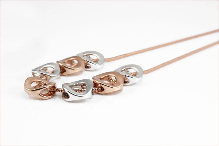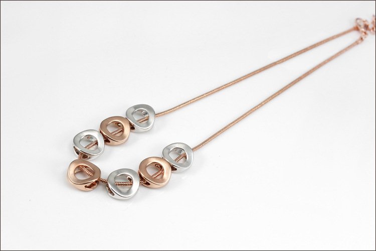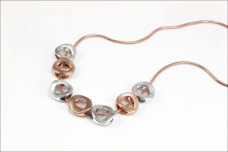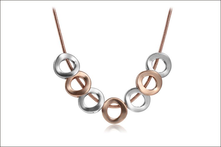 'O'-so-elegant! This classy contemporary necklace is comprised of a 40cm long 18k Rose Gold plated chain, completed to perfection with 18k Rose Gold and 18k White Gold accented Os. Pendant: 1.4 x 1.5 cm Length: 40 cm