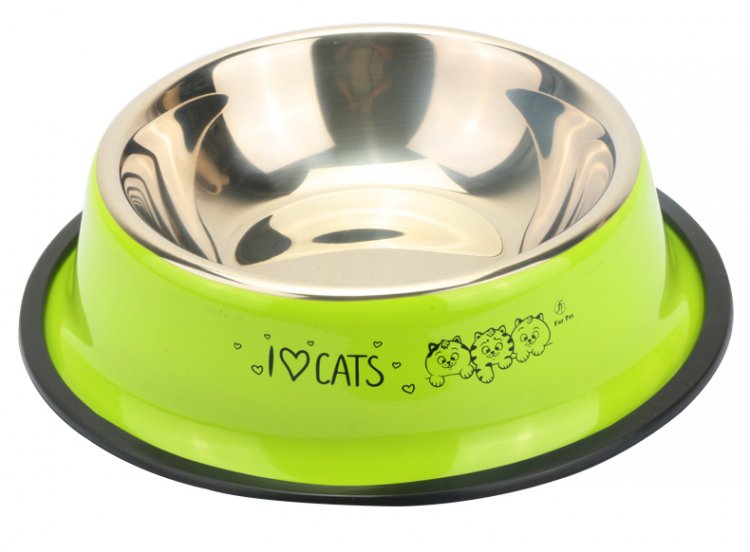- Stainless steel design resists feline acne causing bacteria - Ergonomic design allows 1 full day of food to prevent over feeding - Dishwasher-safe for easy cleaning Item: Width x Height in inches ------------------------------------ Small: 7.1" (width), 2.0" (height) Medium: 8.3" (width), 2.4" (height) Large: 9.8" (width), 2.8" (height) Item: Width x Height in cm ------------------------------------ Small: 15 (width), 8 (height) Medium: 21 (width), 6 (height) Large: 25 (width), 7 (height)